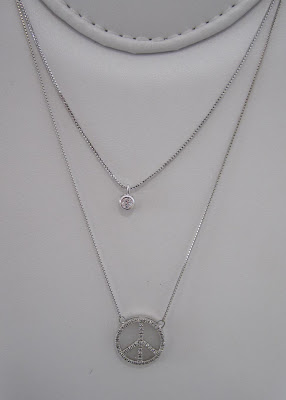 Gargantilha simbolo paz fundo branco cravejado banho de rodio: R$229,00 + frete